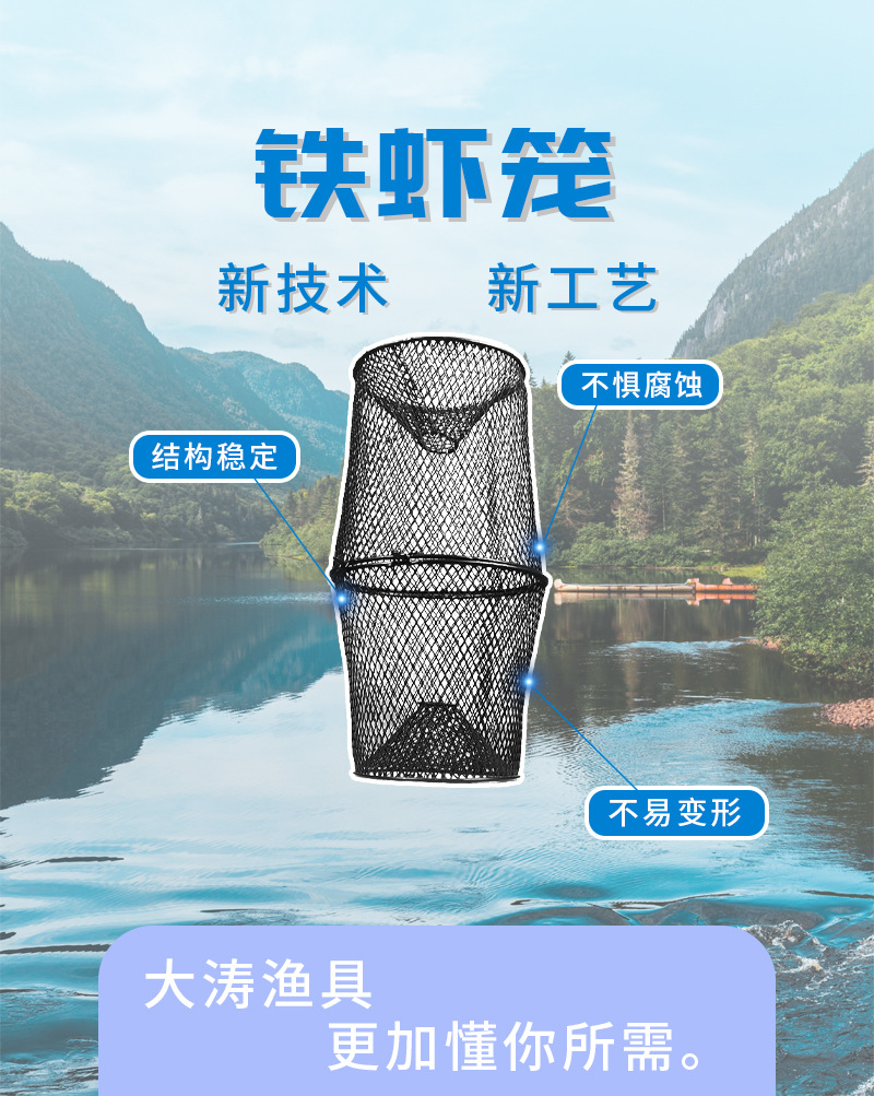 青岛大涛渔具有限公司成立于2007年2月。公司主要生产蟹笼、抄网、渔网、虾笼、鱼护及相关渔具。欢迎海 内外朋友前来参观,选购,我们将以我们最好的产品和服务包您满意。