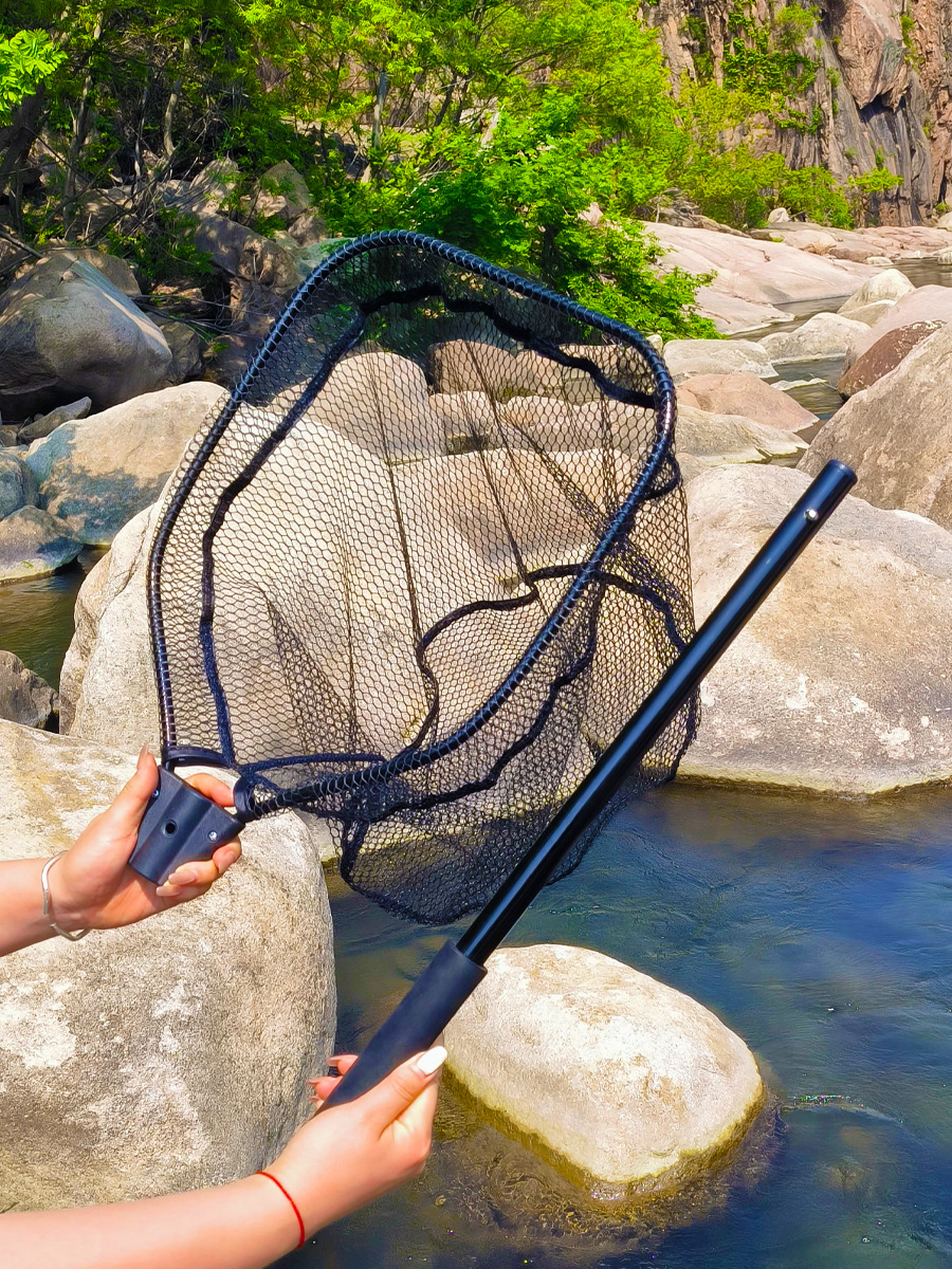 弧形手柄设计,钓鱼时更舒适。 坚固坚固的木质手柄和框架,经久耐用,舒适,易于抓握和平衡。 不会丢失:手柄尾部采用旋转黄铜,配有安全绳和耐用的登山扣磁性释放夹,快速连接,保持网牢,因此您无需担心丢失网网,让您的双手完全自由。